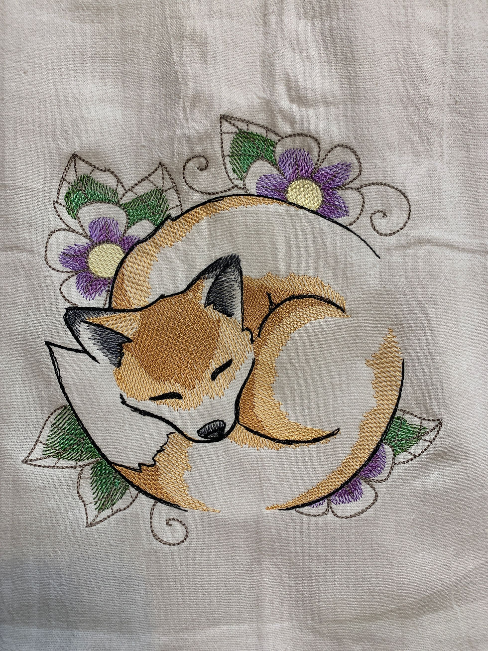 Flour sack tea towel with sleeping fox